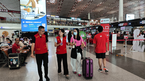 時(shí)值暑運(yùn),為進(jìn)一步做好旅客服務(wù)保障工作,首都機(jī)場股份公司團(tuán)委攜手順義團(tuán)區(qū)委開展了“青春助力暑運(yùn) 服務(wù)溫暖旅途”主題團(tuán)日活動(dòng)。