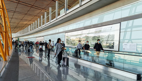 面對(duì)新冠肺炎疫情挑戰(zhàn),首都機(jī)場不斷探索后疫情時(shí)代的經(jīng)營復(fù)蘇舉措,創(chuàng)新航站樓廣告媒體形式。近期,首都機(jī)場股份公司聯(lián)合首都機(jī)場廣告公司于三號(hào)航站樓APM站臺(tái)處落成新型LED地標(biāo)媒體。建成后的雙側(cè)LED高達(dá)16.7米,可視總面積達(dá)117平方米,為首都機(jī)場現(xiàn)有最高的室內(nèi)媒體和最大單體LED媒體。