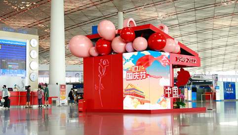 為全面踐行四型機(jī)場發(fā)展理念,深化人文機(jī)場建設(shè),在國慶節(jié)、重陽節(jié)到來之際,首都機(jī)場精心打造“‘禮’贊中華,情寄家國”主題系列節(jié)日景觀,為旅客送上溫馨的節(jié)日祝福。