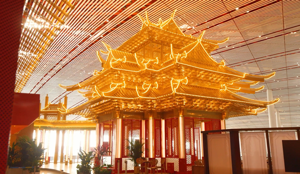 1月26日春運(yùn)第一天,首都機(jī)場3號航站樓五層?xùn)|浮島重裝亮相,開始試營業(yè)。東浮島以北京故宮為創(chuàng)作靈感,以青龍為文脈,以代表東方星宿的故宮角樓為藝術(shù)符號,在有限的空間里最大限度地把皇城元素囊括其中。公共就餐區(qū)環(huán)繞著以紫禁城風(fēng)格為主題的中央廚房區(qū)和以御花園景觀打造的觀景平臺區(qū),并利用圍欄營造山水畫廊區(qū),亮點(diǎn)紛呈。據(jù)悉,東浮島將打造“餐飲+文化”的體驗中心,不定期進(jìn)行文藝演出,形成以餐飲為核心,集合京劇、戲劇、大鼓、古箏等多種傳統(tǒng)藝術(shù)文化的體驗空間,讓中外旅客在多品牌特色菜品和多種類中國文化感染下,感受美好的“餐飲+文化”體驗。
