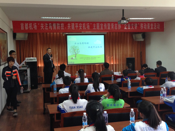 活動中,鄧先山向順義一中附小和裕達隆小學(xué)的學(xué)生代表頒發(fā)了“鳥擊防范小衛(wèi)士”榮譽稱號,贈送了鳥擊防范知識科普書籍,鼓勵同學(xué)們掌握科普知識,積極傳播正向的防鳥、驅(qū)鳥的安全理念。飛行區(qū)鳥擊防范模塊的青年員工積極向首都機場周邊學(xué)校宣講企業(yè)鳥擊防范安全理念,主動宣傳首都機場鳥擊防范重點工作、主要防范措施及科技創(chuàng)新內(nèi)容,通過幽默的語言講述,讓同學(xué)們在潛移默化中感知與學(xué)習(xí)。同時,北京市野生動物救護中心金牌講解員帶領(lǐng)同學(xué)們實地參觀各種鳥類,并現(xiàn)場講解鳥類知識,此次移動課堂的授課方式贏得了老師和同學(xué)們的一致好評。