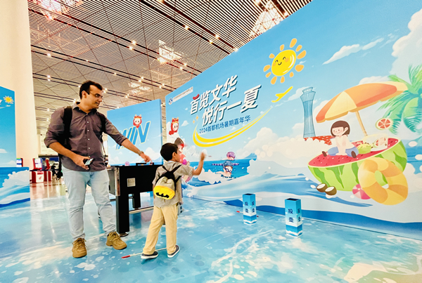 7月30日,首都機(jī)場(chǎng)在3號(hào)航站樓開展了“首覽文華?悅行一夏”暑期嘉年華服務(wù)文化活動(dòng),通過(guò)開展以旅客服務(wù)產(chǎn)品為主題的文化活動(dòng),弘揚(yáng)和傳播中華優(yōu)秀傳統(tǒng)文化,提升旅客出行體驗(yàn)。此次活動(dòng)結(jié)合巴黎奧運(yùn)會(huì)、跨境旅游等元素提升旅客出行體驗(yàn)。旅客只需要打開微信掃一掃首都機(jī)場(chǎng)小程序二維碼,注冊(cè)成為會(huì)員,即可參與任意互動(dòng)體驗(yàn),并有機(jī)會(huì)獲得首都機(jī)場(chǎng)精美文創(chuàng)禮品。旅客在參與多種文體互動(dòng)項(xiàng)目的同時(shí),還可以與首都機(jī)場(chǎng)服務(wù)產(chǎn)品形象IP“都都”進(jìn)行互動(dòng)。持續(xù)兩天的活動(dòng)現(xiàn)場(chǎng)氣氛熱烈,旅客積極參與各項(xiàng)文體活動(dòng),感受到了運(yùn)動(dòng)的快樂和文化的魅力。(徐揚(yáng)攝影報(bào)道)