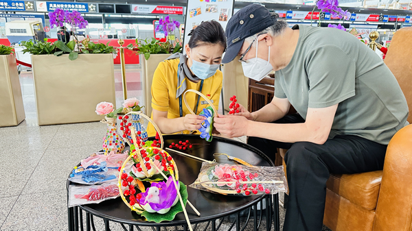 今年中秋喜逢國慶,為增添節(jié)日氛圍,弘揚中華傳統(tǒng)文化,首都機(jī)場在2號航站樓、3號航站樓愛心服務(wù)專區(qū)設(shè)置了中秋節(jié)主題活動,旅客可現(xiàn)場參與花燈、掛飾、琉璃花瓶等工藝品的制作,把來自首都機(jī)場的節(jié)日祝福帶回家。